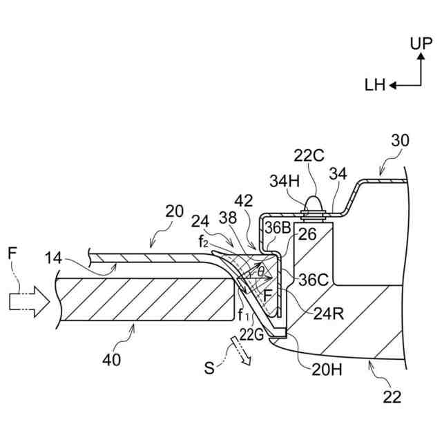 【解決手段】サンバイザ40は、室内天井部14に沿った退避位置40Xに配置可能とされ、退避位置40Xでオーバーヘッドコンソール22に対して車両幅方向外側に配置される。サンバイザ40の退避位置40Xに対して車両幅方向内側には案内部22Gが設けられている。案内部22Gは、サンバイザ40に車両幅方向外側から車両幅方向内側への衝突荷重Fが入力された場合にサンバイザ40をオーバーヘッドコンソール22から逸れる方向(矢印S参照)に案内する。