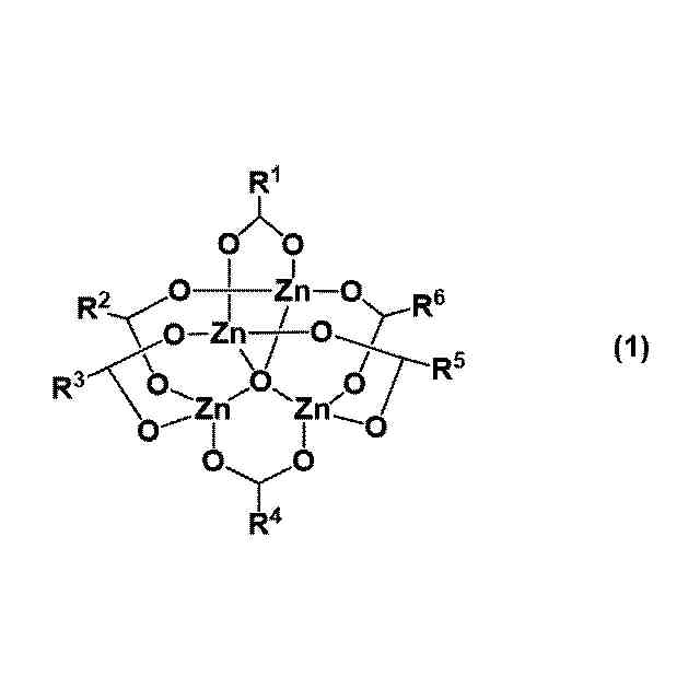亜鉛四核クラスターが、下記式(1)で表されるものである請求項1記載のレジスト組成物。