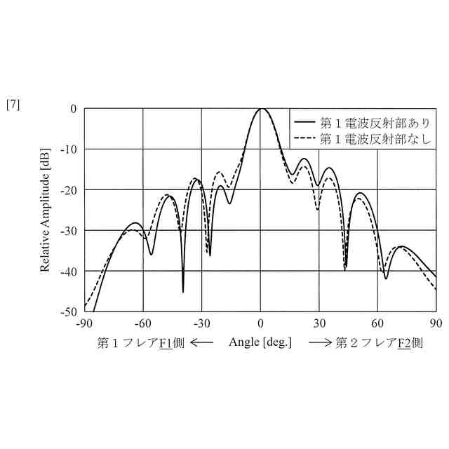 ここで、図2の左欄又は右欄のレーダアンテナが、第1フレアF1及び第2フレアF2の管幅方向に短尺であれば、誘電体を内部に挿入するか、誘電体Dを開口面Aに装荷しても、重量及びコストを抑えることができる。しかし、図2の左欄又は右欄のレーダアンテナが、第1フレアF1及び第2フレアF2の管幅方向に長尺であれば、誘電体を内部に挿入するか、誘電体Dを開口面Aに装荷すれば、重量及びコストを抑えることができない。