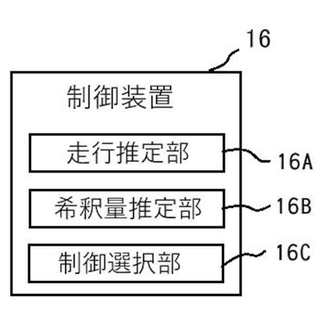 【解決手段】燃料の混入によって希釈されるオイルにより潤滑される内燃機関を駆動力源として搭載している車両を制御する、内燃機関を備えた車両の制御装置16であって、車両の走行予定を求める走行推定部16Aと、走行推定部16Aで求められた走行予定に従って車両が走行した場合のオイルの燃料による希釈量を求める希釈量推定部16Bと、希釈量推定部16Bによって求められた希釈量に基づいて、希釈量を低下させる希釈低下制御の実行および禁止を含む希釈低下制御の選択を行う制御選択部16Cとを備えている。