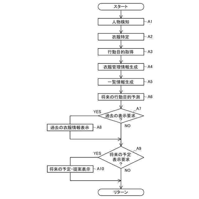 特許文献1に開示されたシステムは、ユーザが着用している衣服の写真を、自宅に設置されたカメラを通じて入手する。そして、衣服の着用履歴を保存する。