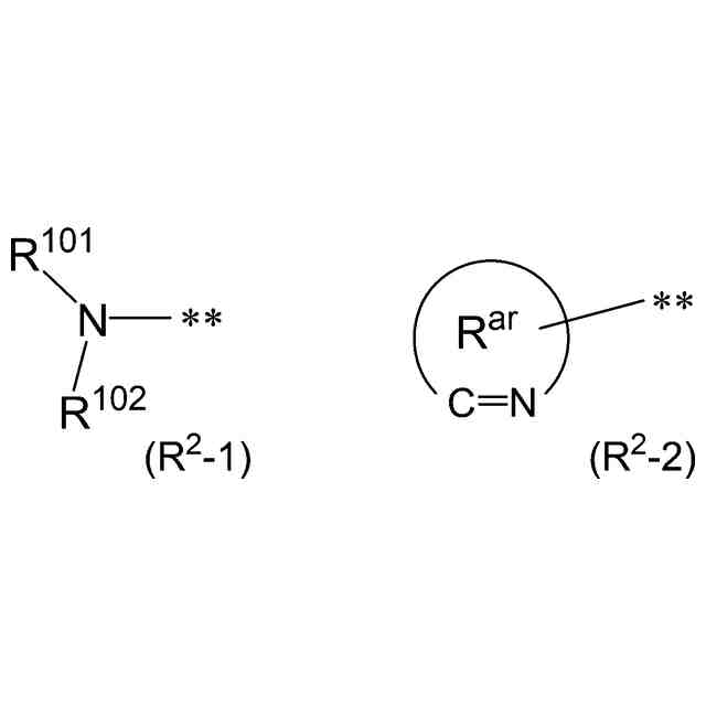 -2)で表されるヘテロアリール基である。式(I)中に存在する複数のR