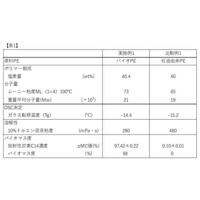 [1] ASTM D 6866に準拠して測定したバイオマス度が10~100%である塩素化ポリエチレン。