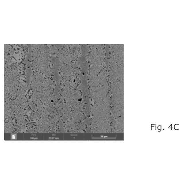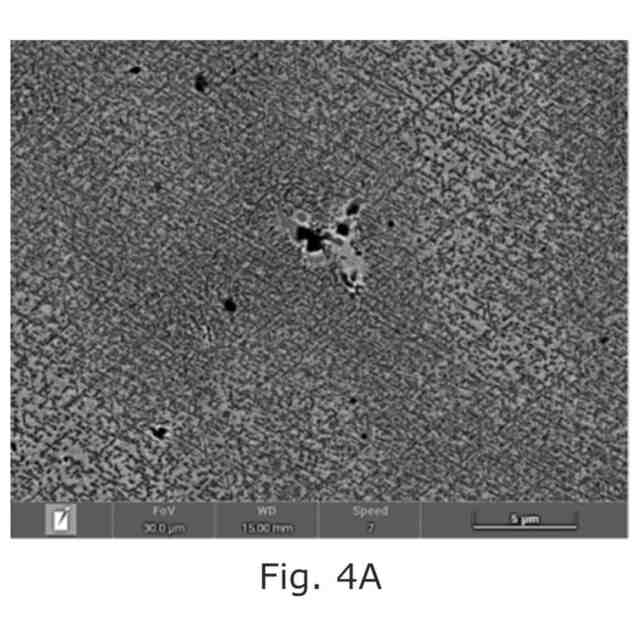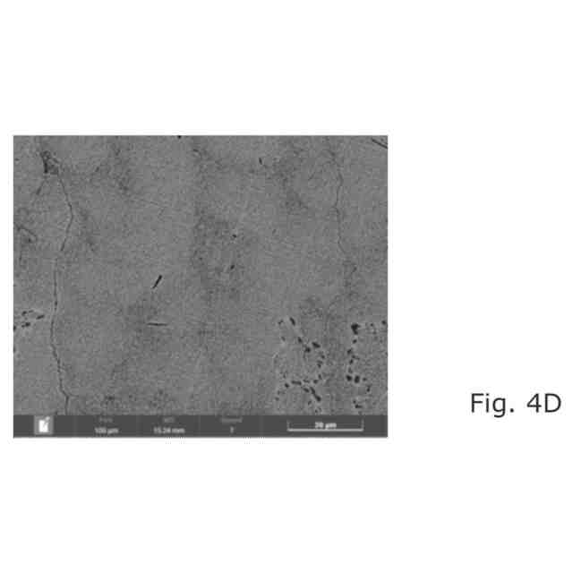 試験は、750℃を超える温度での既知の熱処理などの直接の熱処理に曝された溶接材料の材料が均質ではないことを示している。図4Aおよび図4Dに示されるように、一部の領域は、Ni基合金の特に延性に有害であることが知られているいわゆるトポロジー的に最密充填(TCP)相の形態に類似するバスケットウィーブ(basket weave)微細構造を有しており、図4Bおよび図4Cに示される他の領域は、内部構造を持たず、最終的に他のものは所望のラメラ構造を有し、各構造は実質的に異なる機械的特性を有する。異なる機械的特性を有する非均質材料の構成要素を有することは、厳しい動的力および温度変動によって負荷がかかるときに熱機械的疲労に曝される排気弁などの構成要素の場合に特に好ましくない。したがって、排気弁の機械的特性にとって、微細構造が均質であり、有害であることが知られている微細構造形態を有する領域が最小限に制限されることが重要である。