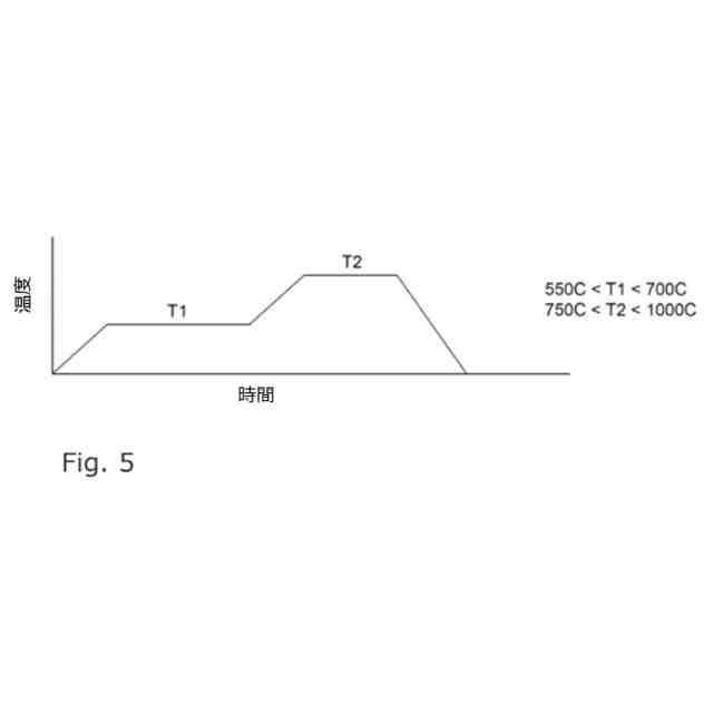 c)前記層(8)を加熱するステップであって、前記層(8)は、少なくとも16時間の持続時間にわたって550~700℃の第1の温度に加熱され、少なくとも1時間の持続時間にわたって750~1000℃の第2の温度に加熱される、ステップと