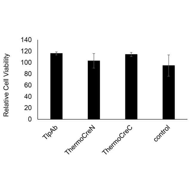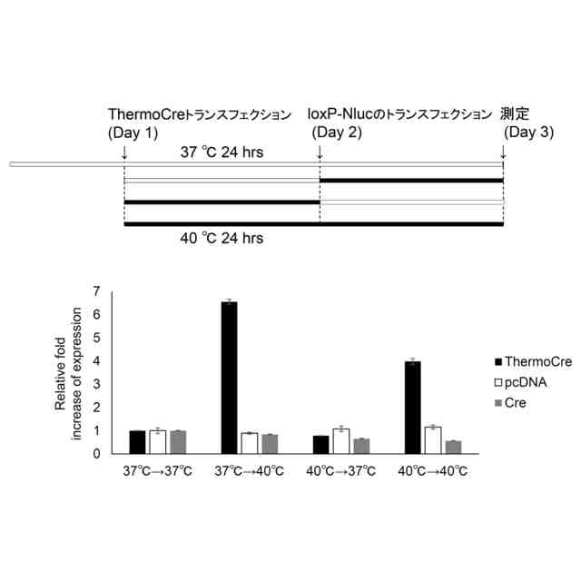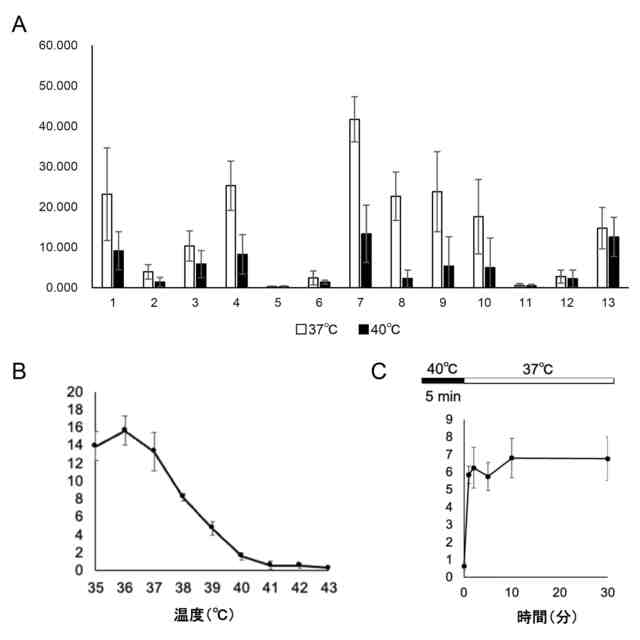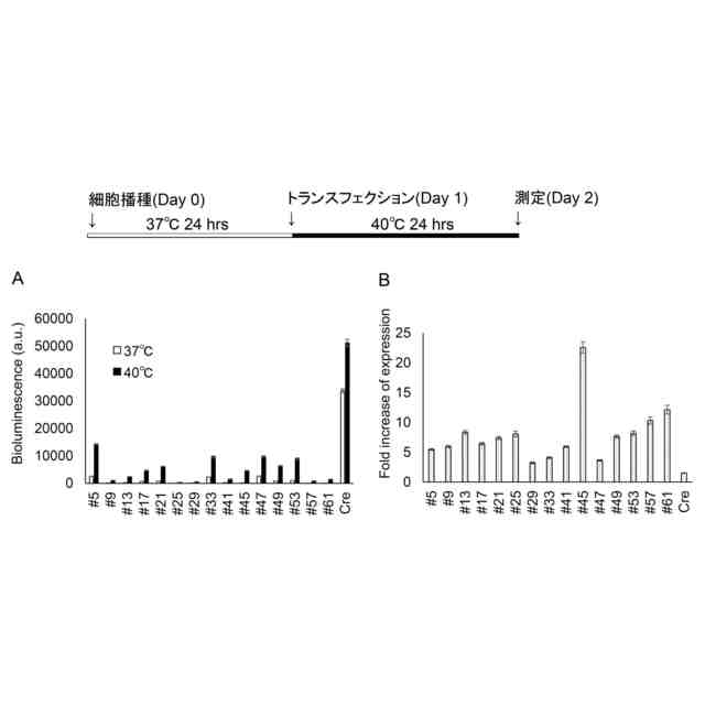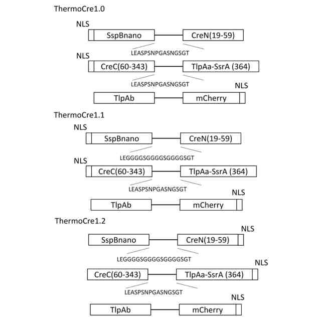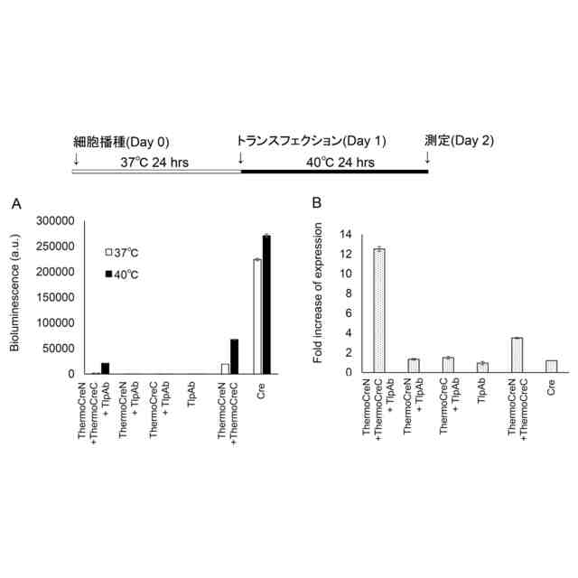 熱遺伝学的ツールを生体内で使用する場合、所望のタイミングと部位で、生体温度と異なる温度、例えば、37℃以上の温度変化が生じた際にタンパク質相互作用を生じさせ、ゲノム編集などの様々な機能を誘導させるようなツールが望ましい。しかしながら、上記TlpAのヘテロ二量体は、37℃付近で結合し37℃より温度が上昇すると解離する性質を持つため、加熱によるTlpAの二量体形成に伴って、タンパク質断片を結合するという原理を利用した生体内における相互作用を誘導するツールとしては適していない。