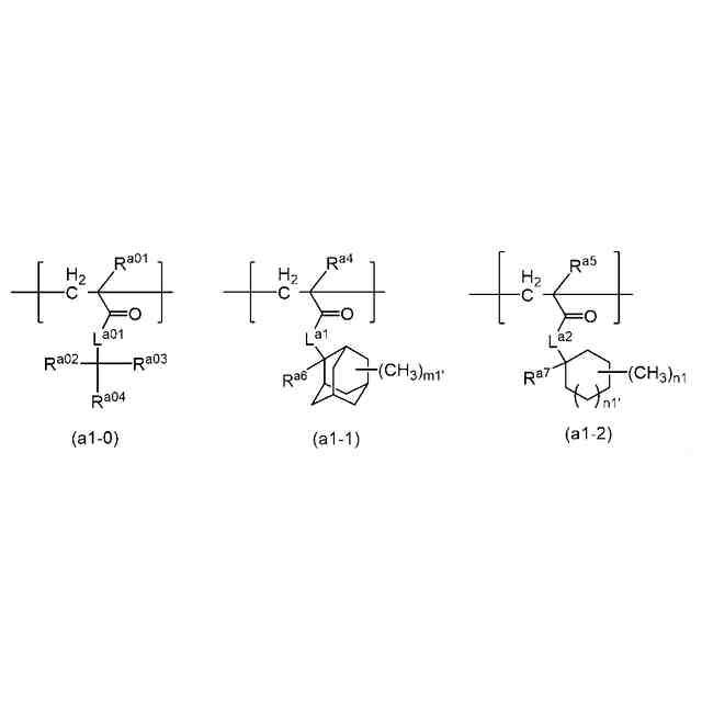 -で置き換わる場合、各基において同様の例を適用するものとし、置き換わる前の炭素数を炭化水素基等の炭素数とする。「組み合わせた基」とは、例示した基を2種以上結合させた基を意味し、それら基の価数は結合形態によって適宜変更してもよい。「由来する」又は「誘導される」とは、その分子中に含まれる重合性C=C結合が重合により-C-C-基(単結合)となることを指す。立体異性体が存在する場合は、全ての立体異性体を含む。各基は、置換基の数等によって、その基に含まれる任意の位置及び数の水素原子が結合手に置き換わることがある。置換基における炭素数は、被置換基の炭素数には含めない。「酸不安定基」とは、酸(例えば、トリフルオロメタンスルホン酸等)と接触すると、脱離基が脱離して、親水性基(例えば、ヒドロキシ基又はカルボキシ基等)を形成する基を意味する。「塩基不安定基」とは、塩基(例えば、トリメチルアミン、テトラメチルアンモニウムヒドロキシド等)と接触すると、脱離基が脱離して、親水性基(例えば、カルボキシ基又はヒドロキシ基等)を形成する基を意味する。