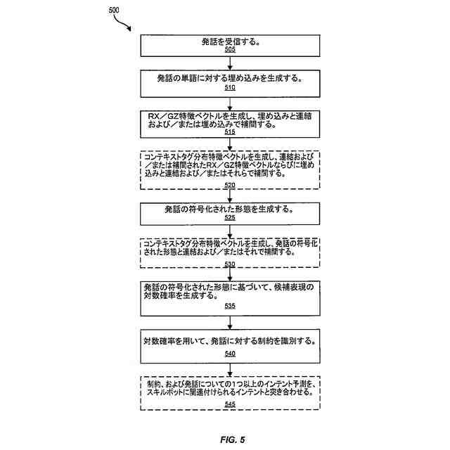 【解決手段】表現認識のためにコンテキストを考慮する方法は、発話を受信することと、発話の単語に対して埋め込みを生成することと、発話に対して正規表現およびガゼッティア特徴ベクトルを生成することと、発話に対してコンテキストタグ分布特徴ベクトルを生成することと、特徴ベクトルのセットを生成するために、埋め込みを正規表現およびガゼッティア特徴ベクトルならびにコンテキストタグ分布特徴ベクトルと連結またはそれらで補間することと、特徴ベクトルのセットに基づいて発話の符号化された形態を生成することと、発話の符号化された形態に基づいて対数確率を生成することと、発話について1つ以上の制約を識別することと、を含む。