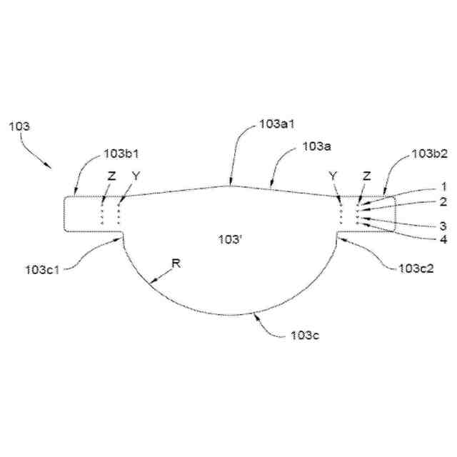 前記弁尖(103)は、頂点(103a1)を有するまたは有さない比較的直線的な上端(103a)、前記上端(103a)の両側の弁尖(103)における1つの交連タブ(103b1,103b2)、および前記内側スカート(105)に取り付けられた直線的な下端(103c’)と2つの側端(103c”)を有し、前記上端(103a)は交連のために自由な状態に保たれる、請求項1に記載の人工大動脈弁(100)。