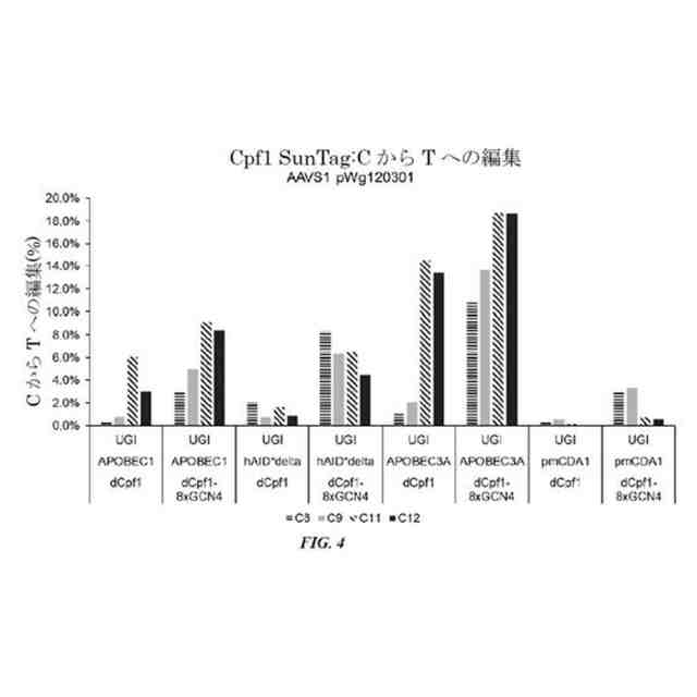 遺伝子編集は、標的化されたゲノム位置においてバリエーションを導入するために部位特異的ヌクレアーゼを利用するプロセスである。CからTへの塩基編集は、標的化モジュールとしてCas9を用いる塩基エディタによって達成され得る。例えば、Komor et al.(Sci Advances 3(8):eaao4774)(2017))およびKoblan et al.(Nat Biotechnol 36(9):843-846(2018)は、APOBEC1デアミナーゼ、Cas9ニッカーゼ(D10A)、および2コピーのウラシルグリコシラーゼ阻害剤(UGI)を含む融合タンパク質としてCas9を用いる塩基エディタを開示している。Li et al.(Nat Biotechnol.36(4):324-327(2018))は、Cas9を不活性化Cpf1で置き換えている。ヒト細胞において活性であるが、このCpf1構築物は、そのCas9相対物よりも効率が低い。