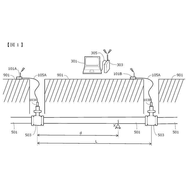各検知手段が搭載する時計の精度と、それらの時計の時刻制度については、時計の代わりに標準電波を用いることで解決できる。標準電波は日本国内の場合佐賀県と福岡県の2か所から送信されている。電波帯域としては60kHzと40kHzの2つを使用しておりラジオのFM波の帯域に含まれる。時刻信号の生成は短期間(1日以下)の周波数安定度に優れている水素メーザーと長期間(1日以上)の周波数安定度に優れているセシウム原子時計併用しており、1×10-12という驚異的な精度を実現しており、目標とする精度の十万分の一秒を十分満たしている。時計の代替となる精密な時刻信号は、人工衛星からも取得可能である。近年では米国のGPSの他にも各国がGNSS(Global Navigation Satellite System)衛星を打ち上げ、運用している。日本も準天頂衛星の「みちびき」の運用を開始しており現在は7基が稼働している。各検知手段間の距離の計測は、人工的に発生させる打鍵音を利用することで簡便かつ迅速に、さらには正確に行うことが可能になる。各検知手段には速度計あるいは加速度計が含まれている。そこで、これらを設置した状況で特定の速度計あるいは加速度計の近傍の管体に衝撃を加え振動を発生させて、それが到達した時間差を観測すれば、管体を伝わる弾性波速度が既知量であることから各検知手段間の距離が求められる。なお、この手法は用いるには全検知手段請求項1,あるいは2のような標準時刻や人工衛星からの電波を受信し、極めて正確な時刻信号情報を保持していることが前提となる。各検知手段と親機または解析用のパーソナルコンピューター間の通信には、水道の漏水検知に特化した場合、移動系防災行政無線で採用されている260MHz帯デジタル方式が利用可能である。移動系防災行政無線は従来150MHz帯及び400MHzを用いるアナログ方式で運用されていたが、平成13年度から260MHz帯デジタル方式が導入され、現在はこの方式への移行が進んでいる。デジタル化に伴い無線機能は高度化しており、多チャネル化、個別端末の直接呼出し、画像伝送等のデータ通信が可能となっている。