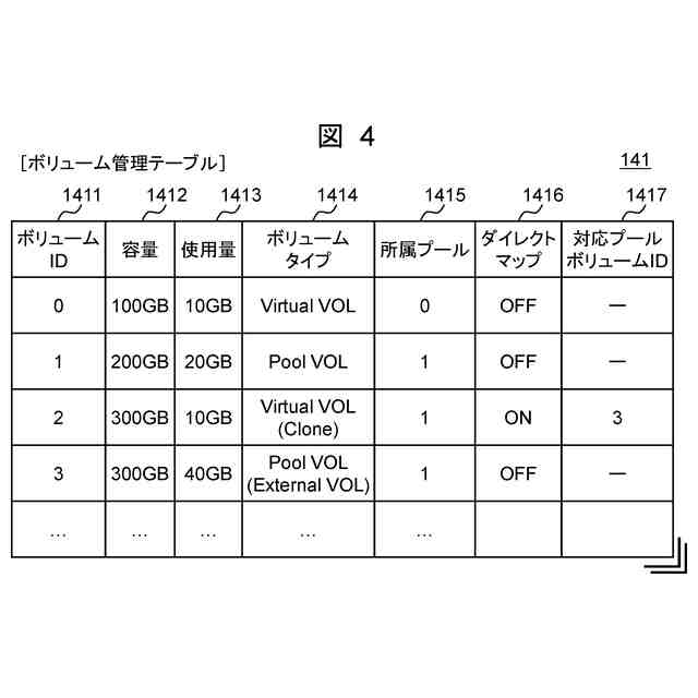 1以上のプールボリュームから構成され前記仮想ボリュームのアドレスへのデータが当該アドレスにマッピングされたアドレスに論理的に格納されるプールと、