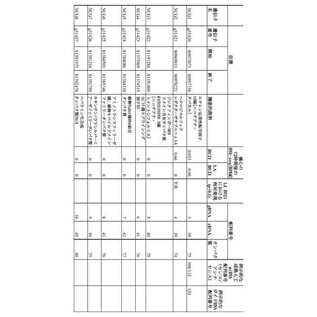 遺伝子型、環境、受精、および耕種学的実施を含む様々な要因がタバコアルカロイドレベルに影響する(例えば、ニコチン産生は、摘心、傷付け、および草食動物による損傷により刺激される)。キューバシガータバコ品種の株において最初に見出された低アルカロイド形質は、一連の戻し交雑を通じてシガレット品種に導入された。低アルカロイドのタバコ生殖質はその後に、栽培品種Burley 21の遺伝的背景において登録された(Legg et al.、Crop Science、10:212(1970)(非特許文献1))。低アルカロイドBurley 21(LA BU21)株を使用した遺伝学的研究は、2つの関連しない遺伝子座がタバコ葉におけるニコチンレベルに寄与することを指し示した。これらの2つの遺伝子座はNic1およびNic2と称される。LA BU21においてnic1およびnic2(それぞれニコチン1およびニコチン2と同じ)突然変異は半優性である。それらはニコチンレベルに対して用量依存的な効果を示し、nic1の効果はnic2の効果より約2.4倍強い。Nic2遺伝子座の分子的特徴付けが報告されている。nic2突然変異は、エチレン応答性因子(ERF)ファミリーからの転写因子遺伝子、例えば、ERF189、ERF115、ERF221、ERF104、ERF179、ERF17、およびERF168のクラスターの欠失を含有することが示された(Shoji et al.、Plant Cell、(10):3390-409(2010)(非特許文献2))。