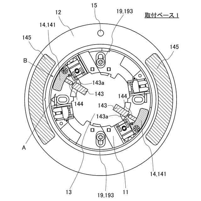 火災感知器本体2は作業者の手で保持され、図1(a)に示すように下方から取付ベース8に近づけられる。そして、嵌合空間83に差し入れたのち、回転させることにより、図1(b)に示すように取付ベース8に取り付けられる。また、図1(b)の取り付け状態において、作業者が火災感知器本体2を取り付け時と逆方向に回転させることにより、火災感知器本体2を取付ベース8から取り外すことができる。