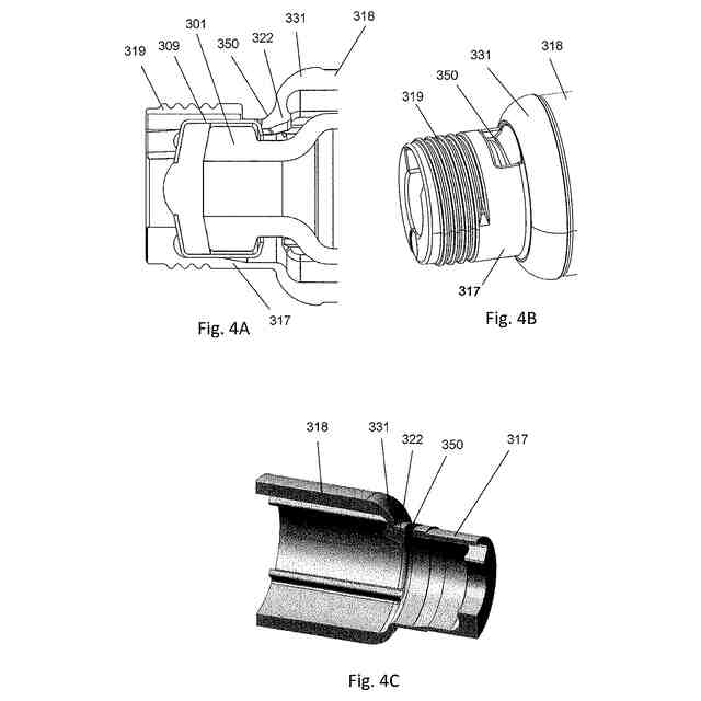- 該主本体領域(318)の剛性と比較して、低減された機械的剛性を有する領域(350)とを含み、ここで、該低減された機械的剛性を有する領域(350)は、遠位領域(317)に一体化され、ニードルコネクタ(319)と固定機能(322)との間に配置されており、したがってカートリッジ(301)が近位方向に動かされるとき、発生する負荷が、カートリッジ(301)から固定機能(322)へ、さらに主本体領域(318)へ、近位方向に伝達される、前記カートリッジアセンブリ。