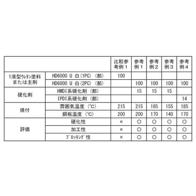 従来のカラー鋼板の工業的な製造ラインで1液型ウレタン塗料が用いられていた理由としては、そのポットライフが長いこと等が挙げられる。この1液型ウレタン塗料は、ポットライフが長いというメリットがあるが、1液型ウレタン塗料を用いて充分な性能を有する硬化塗膜を形成するためには、その焼付温度を高くしなければならないというデメリットがある。なお、上塗り塗料として1液型ウレタン塗料を使用する特許文献1の実施例では、その焼付を232℃×60秒で行っている。