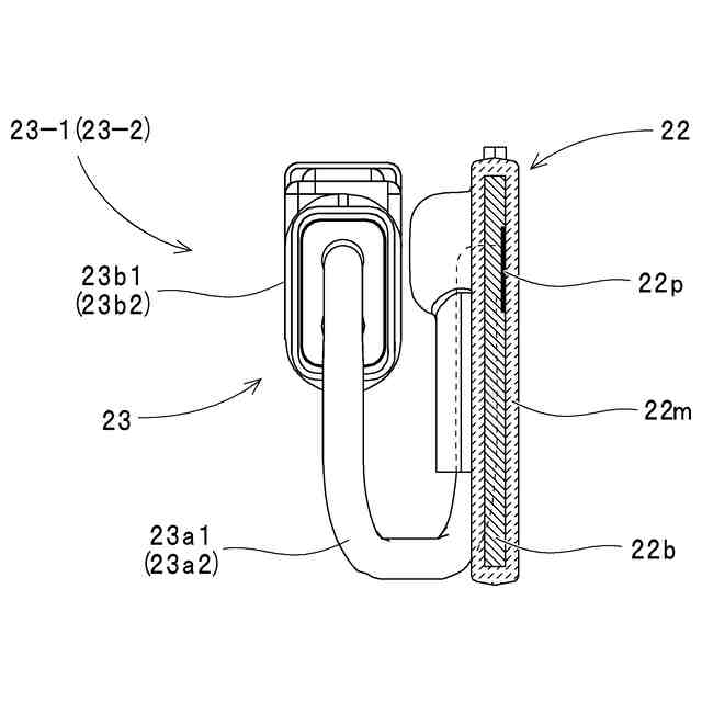前記他方のコイル形成ユニットにおける前記コイル用基板の基板面に沿ってそれぞれ位置する部位であって、前記第4部位の前記先端部側部位と前記導体パターンの前記一端部に接近する向きに沿って当該先端部側部位から離間する先端部側部位との間の第5部位、当該第5部位の前記先端部側部位と前記導体パターンから離間する向きに沿って当該先端部側部位から離間する先端部側部位との間の第6部位、当該第6部位の前記先端部側部位と前記導体パターンの前記他端部に接近する向きに沿って当該先端部側部位から離間する先端部側部位との間の第7部位、および当該第7部位の前記先端部側部位と前記導体パターンに対して接近する向きに沿って当該先端部側部位から離間する前記第2ケーブルの前記基端部との間の第8部位とを備えると共に、