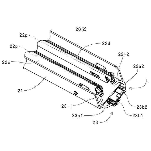 前記接続用部材は、前記導体パターンの長手方向における一端部に基端部が接続された第1ケーブル、および当該第1ケーブルの先端部に接続された第1コネクタを有する第1部材と、前記導体パターンの前記長手方向における他端部に基端部が接続された第2ケーブル、および当該第2ケーブルの先端部に接続された第2コネクタを有する第2部材とを備え、