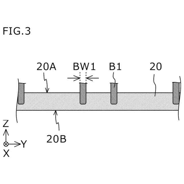 第1刃厚の第1ブレードを用いて前記第1面側から前記板状部材の一部を除去することで、上面視において第1方向に沿って延伸し、かつ、互いに平行な2つの第1溝を形成して、前記2つの第1溝に挟まれ第1幅を有する第1部分と、前記第1部分を挟む第2部分と、前記第1部分及び前記第2部分を連結し、前記第1部分及び前記第2部分よりも厚さが薄い第3部分と、を形成する工程と、