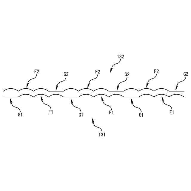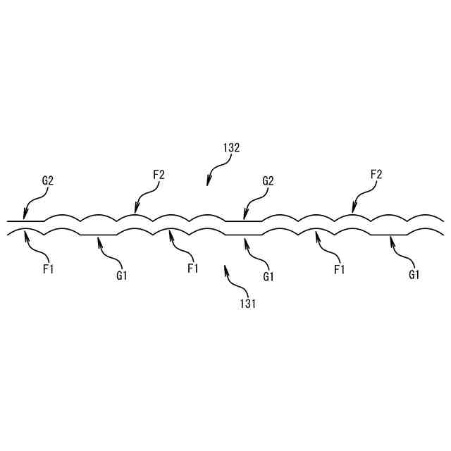 前記閉塞部は、前記第1溝および前記第1畦部の形成ピッチとは異なる形成ピッチで第2畦部、および、前記第2畦部に隣接する第2溝が形成されるように編成されている