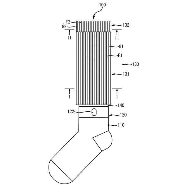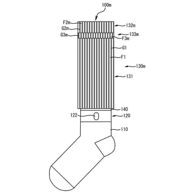 本発明の第1局面に係る肢装着具は、肢の一部または全部を覆う肢装着具であって、溝形成部および閉塞部を備える。なお、ここにいう「肢」は腕および脚である。ここにいう「脚」は、太ももの付け根から下足のつま先までの部位を指す。また、「肢装着具」は、脚および腕の少なくとも一方に装着されるものという。また、この「肢装着具」には、脚の一部または全部を覆う脚装着具、および、腕の一部または全部を覆う腕装着具が含まれ得る。肢装着具が脚装着具である場合、脚装着具には、パンティ部を有するものも含まれ得る。脚装着具としては、例えば、靴下(ソックスやハイソックス等)、レッグウォーマー、ストッキング、タイツなどが挙げられる。また、腕装着具としては、例えば、アームカバー、アームウォーマーなどが挙げられる。溝形成部の内側には、挿入口側に向かって延びる第1溝が少なくとも1本形成されている。なお、挿入口は部位を指すのではなく縁を指している。肢装着具が脚装着具である場合、挿入口は履き口である。また、溝が形成される結果として、その隣接位置に畦部が形成されることになる。すなわち、ここで、溝と畦部はセットで形成されることになる。なお、これは、溝形成部には、一方方向に延びる縞状の凹凸が形状されていると表現することもできる。また、上述の通り、ここで溝は、挿入口側に向かって延びていると規定されているが、これは、溝の形成方向が、肢装着具の筒軸に対して平行であることを限定するものではない。すなわち、溝の形成方向は、本発明の主旨を損なわない範囲で、肢装着具の筒軸に対して平行でなくてもかまわない。閉塞部は、溝形成部の挿入口側に形成されている。また、この閉塞部は、一部または全ての溝の挿入口側の端を閉じている。なお、閉塞部により全ての溝の挿入口側の端が閉塞されている場合、その肢装着具の保温性を高めることができる。その一方、閉塞部により一部の溝の挿入口側の端が閉塞されている場合、保温性を高めるだけでなく蒸れなどを軽減することができる。
