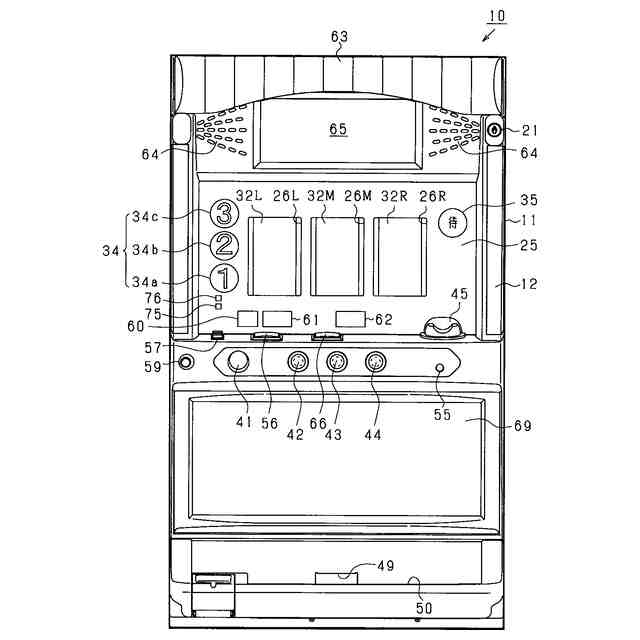 前面扉を開いた状態を示すスロットマシンの斜視図である。