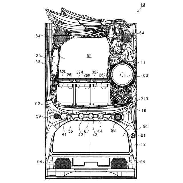 前面扉を開いた状態を示すスロットマシンの斜視図である。