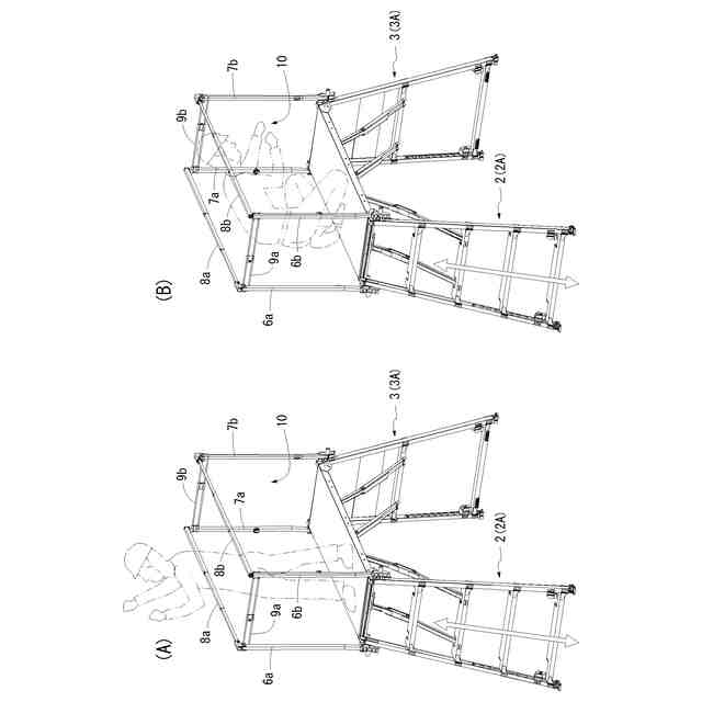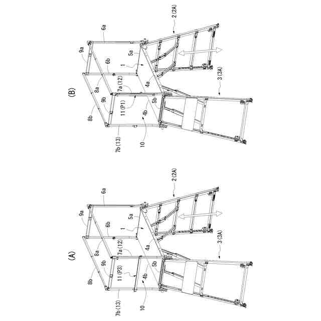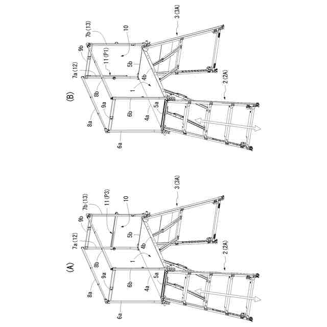 前記一対の第2手掛かり棒(7a,7b)は、一方を支持側の手掛かり棒(12)とし、他方を受側の手掛かり棒(13)として、支持側の手掛かり棒(12)の長手方向の中間部に枢軸(14)を突設しており、