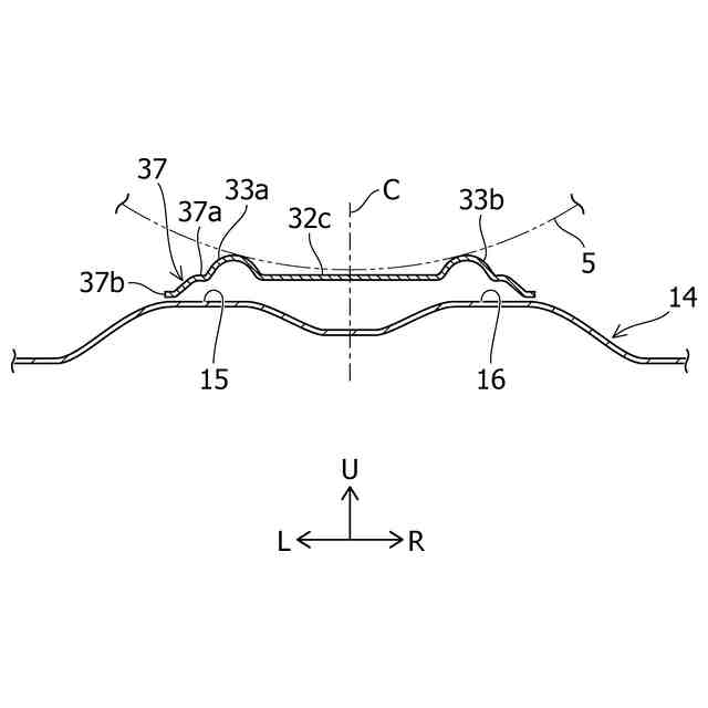 上記例の構造では、スペアタイヤを仮置きするときに、凹部の後方側に位置する周辺部に局所的に荷重が作用する。そのため、当該周辺部が変形する可能性がある。周辺部に作用する荷重を低減させるために、作業者はスペアタイヤにより下方に作用する荷重の一部を受けた状態で、スペアタイヤを仮置きする必要がある。この場合、スペアタイヤの設置作業は、作業者に強い腕力が要求される場合がある。