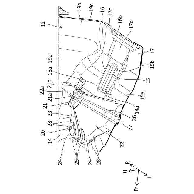 作業者がスペアタイヤをタイヤ収納部に収納する作業では、通常、スペアタイヤをタイヤ収納部の間口から挿入し、タイヤ収納部の例えば後部にスペアタイヤを起立させた状態で仮置きし、その後に、スペアタイヤを、前方に倒すことによって、収納される状態に移行させる。そのため、仮置き時には、タイヤ収納部の後部でスペアタイヤの自重による荷重が作用する。