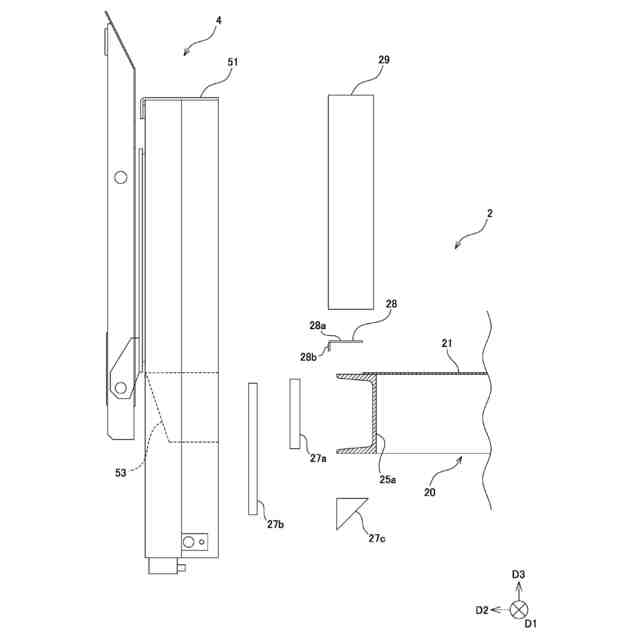 また、以下の説明において、第1方向(第1横方向)D1は、前後方向D1ともいい、第1方向D1のうち、図における矢印方向を前方向とし、図における矢印方向と反対方向を後方向とする。また、第2方向(第2横方向)D2は、左右方向D2ともいい、第2方向D2のうち、図における矢印方向を左方向とし、図における矢印方向と反対方向を右方向とする。また、第3方向D3は、上下方向D3ともいい、第3方向D3のうち、各図における矢印方向を上方向とし、各図における矢印方向と反対方向を下方向とする。