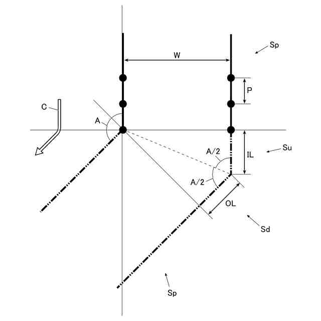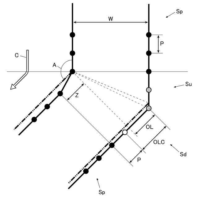 例えば、図9に示すように、屈曲部で屈曲する進路に沿って二本の縫い目を平行に形成する場合、外側の縫い目の屈曲部の頂点の上流側と頂点の下流側とにそれぞれ内側の縫い目よりも余分に形成される上流側追加縫い目Suと、下流側追加縫い目Sdとが発生する。