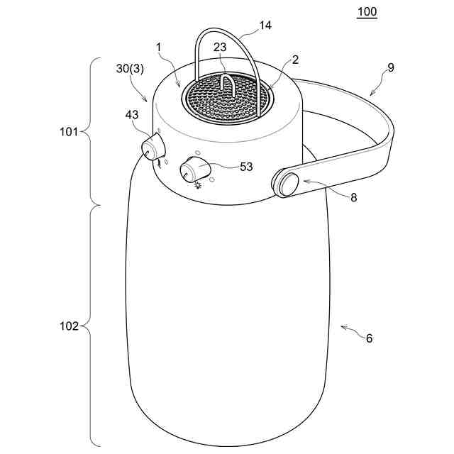 項1.固形の芳香材が載せられる底面部を備えた容器と、前記容器に着脱自在に取り付けられる蓋と、前記容器が着脱自在に設置される設置部と、前記設置部に設置された前記容器の前記底面部を加熱する加熱器と、を少なくとも備え、