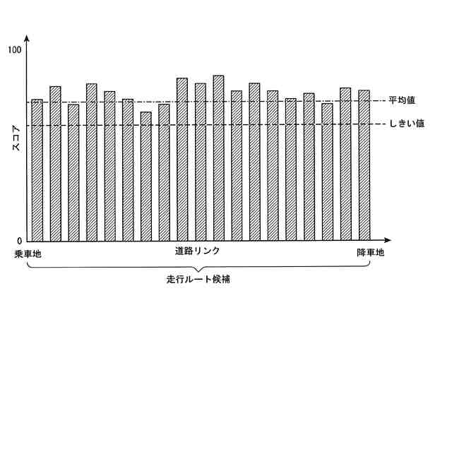 算出した前記スコアが所定のしきい値を上回る前記走行ルート候補を前記走行ルートとして決定する、