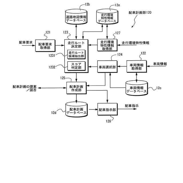 前記走行ルート決定部は、前記走行ルート候補に関連付けられる前記走行環境特性情報に基づいて、前記配車要求が示す前記ユーザ行動指向に対する前記走行ルート候補ごとのスコアを算出し、