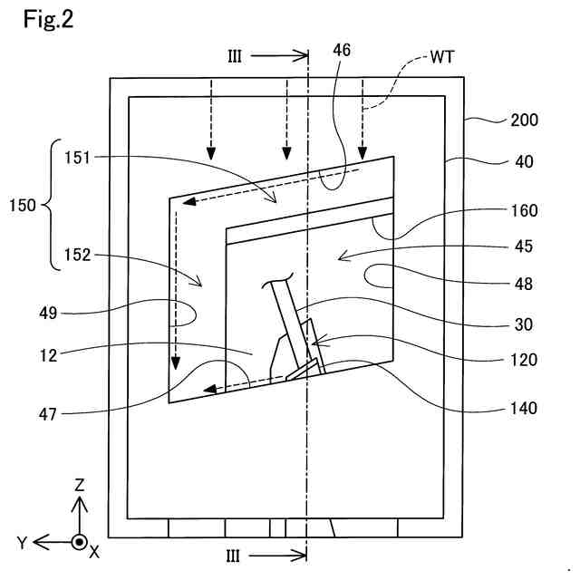 図1には、互いに直交するX,Y,Z軸を示す矢印が図示されている。X軸およびY軸は、水平面に平行な軸であり、Z軸は、重力方向Gに平行な軸である。X,Y,Z軸を示す矢印は、他の図においても、矢印の指し示す方向が図1と対応するように適宜、図示してある。