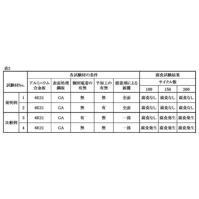 しかし、上記特許文献1に示すように、表面処理を施した表面処理鋼板を使用した場合や、特許文献2に示すように、接合部に水分が侵入することを防止する方法を使用した場合であっても、表面処理鋼板の切断面の近傍でアルミニウム合金材と接合する際には、鋼板の端面において鉄素地が露出する。露出した切断面(加工端面)は、追加で表面処理を施すことが難しいため、一般的に、シーリング剤のような低強度で水密性の高い接着剤が、切断面の防食用途として使用される。