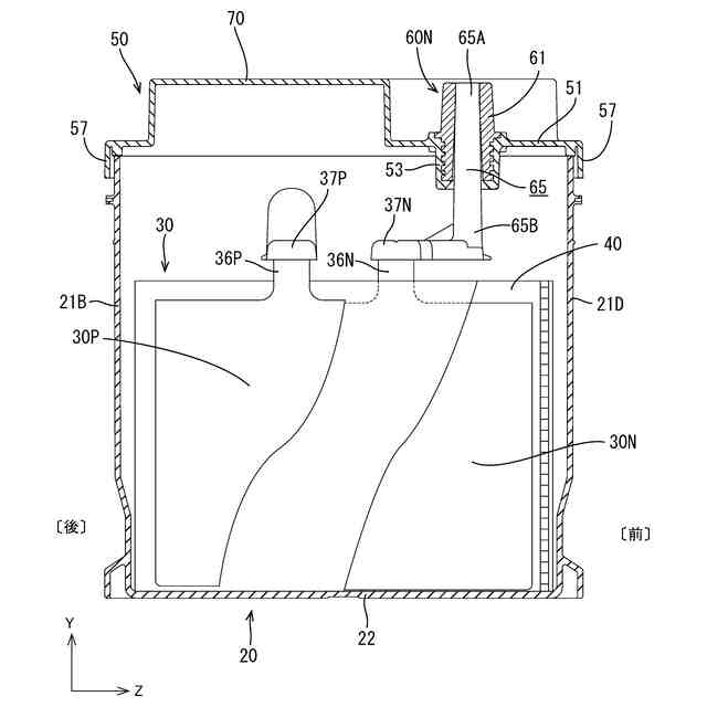 鉛蓄電池の垂直断面図(図1のA-A断面図)である。