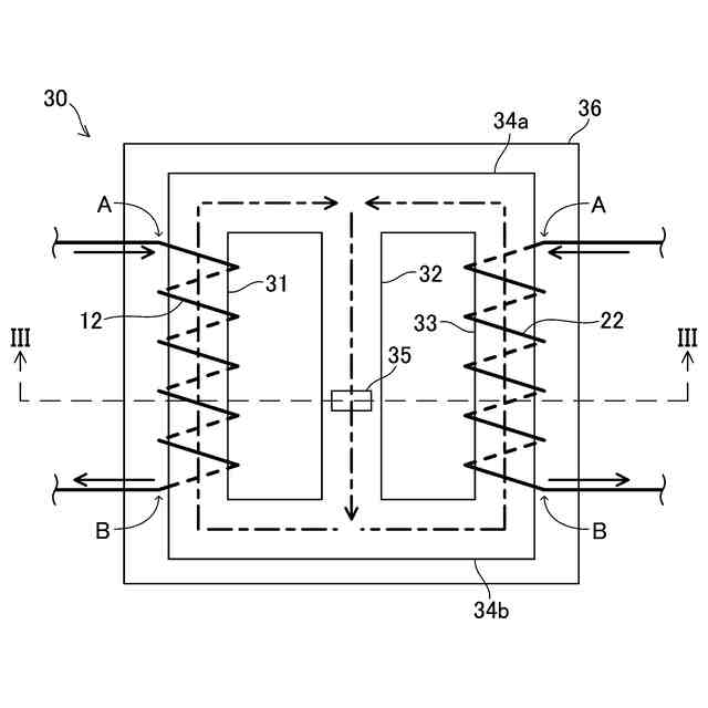 並んで配置されている3個の前記I字コアのうち、一方の端の前記I字コアに前記第1コイルが巻回されており他方の端の前記I字コアに前記第2コイルが巻回されている、