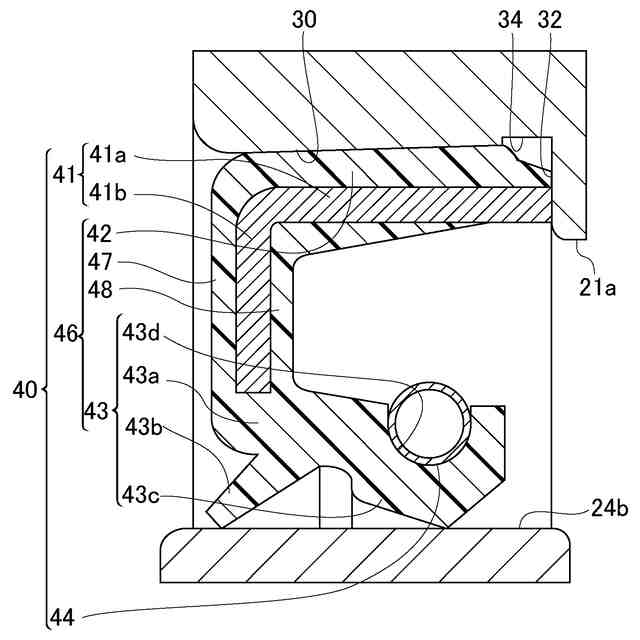 本発明によれば、簡素且つ低コストな構成によって、高温、高荷重等の過酷な環境の中で継続的に使用した場合であっても、シール体が軸受から脱落したり、供回りしたりすることを防止できる。