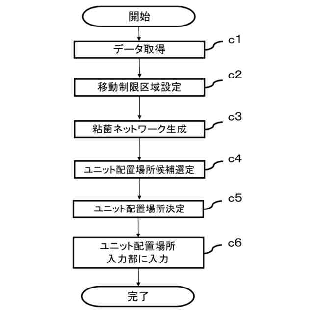 前記推論部は、前記粘菌ネットワークを構成する複数の経路の交差点のうち、分岐数の多い地点を前記ユニット配置場所として出力する、