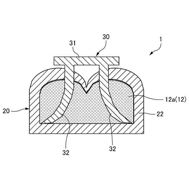 前記補助電極は、前記端子の前記外側に位置する頭部と、前記頭部から前記複数の素線間に入り込むように延びる足部と、を有する、