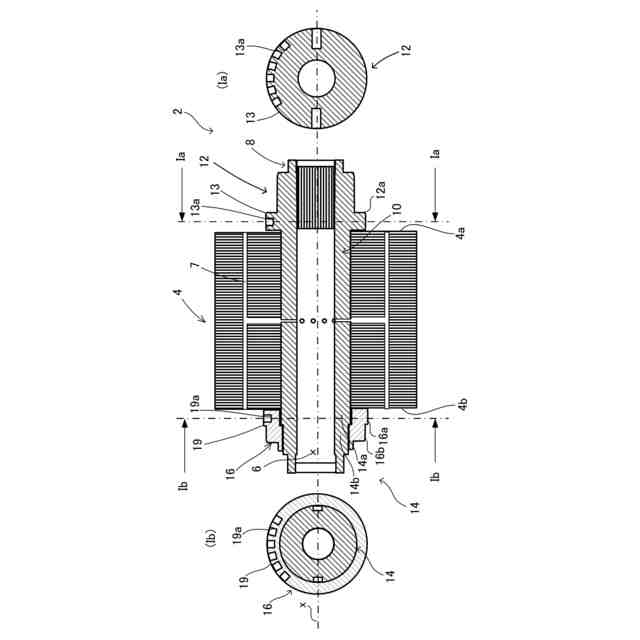 また、このモータのロータシャフトには、バランス調整用の追加の部品が取付けられないため、モータ全体の軸長がこれらの部品によって長くなることが抑制される。