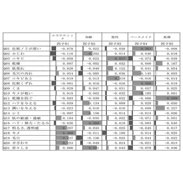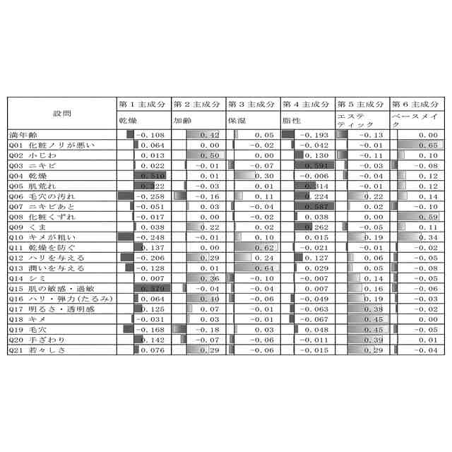 特許文献1に記載の技術においては、利用者と利用化粧品が重複する化粧品ユーザのみを抽出し、化粧品ユーザと前記利用者との利用者近似度を化粧品ユーザ属性情報に基づいて計算している。ここで、化粧品ユーザ属性情報は、肌質、年齢、地域、お気に入りのブランド、職業、利用化粧品についての口コミ評点等を含む。例えば、「肌質」は、普通肌、乾燥肌、脂性肌、混合肌、敏感肌及びアトピーの中から、基本情報設定画面において利用者が自ら設定を行うものである。しかし「肌質」の分類は、「あなたの肌質は次の選択肢のどれに当てはまりますか。」といった直接的な問診で得られる「顕在属性」のみを用いて行うことは難しい。「肌質」は、3つ以上の設問、より好ましくは数十個の設問を含む問診の回答から得られる2つ以上の集約量を用いて表現される「潜在属性」を用いて分類しないと精度が低い。特許文献1に記載の技術においては、コメントを表示するか表示しないかという決定に影響を及ぼす化粧品ユーザ属性情報は、利用者が自ら設定又は入力した「顕在属性」である。より精度の高いユーザ分類を可能にする「潜在属性」は化粧品ユーザ属性情報として用いられていない。