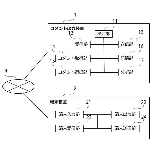 コメント出力装置、コメント出力方法及びコメント出力プログラム