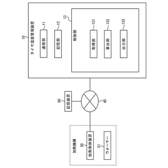 前記入力データを用いて、前記タイヤの温度が、前記稼働開始予定日時に、前記使用温度に基づいて定められる目標温度であるように、少なくとも加熱開始日時を含む前記タイヤの加熱を制御するための値を算出する算出部と、を備える。