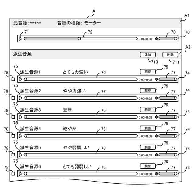 前記音源種類情報は、前記派生音源の生成に使用される複数の前記フィルタの各々に割り当てられた1以上の評価語を含み、