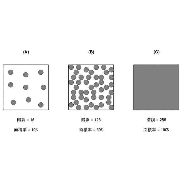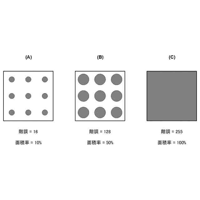 階調と糊面積率との間の関係について説明するための第2の説明図。