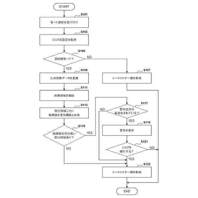 第1実施例において糊面積率に応じた警告のために実行され得る処理の詳細な構成の一例を示すブロック図。