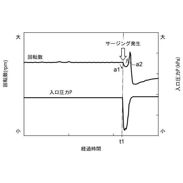 【解決手段】コンプレッサと、コンプレッサに回転軸を介して連結されたタービンとを含む過給機と、コンプレッサの入口圧力を計測するための圧力センサと、圧力センサによって計測したコンプレッサの入口圧力に基づいて、コンプレッサのサージングの発生を検知するように構成されたサージング検知部と、を備える。
